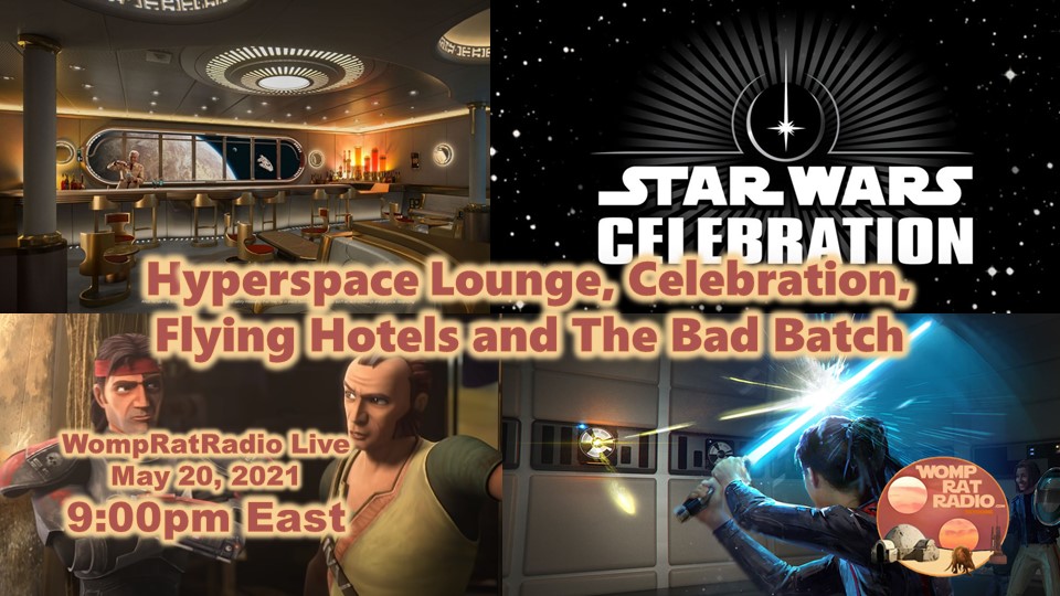 Hyperspace Lounge, Celebration, Flying Hotels, and The Bad Batch? Let’s Talk Star Wars Tonight on WompRatRadio – We hope you’ll join us!!