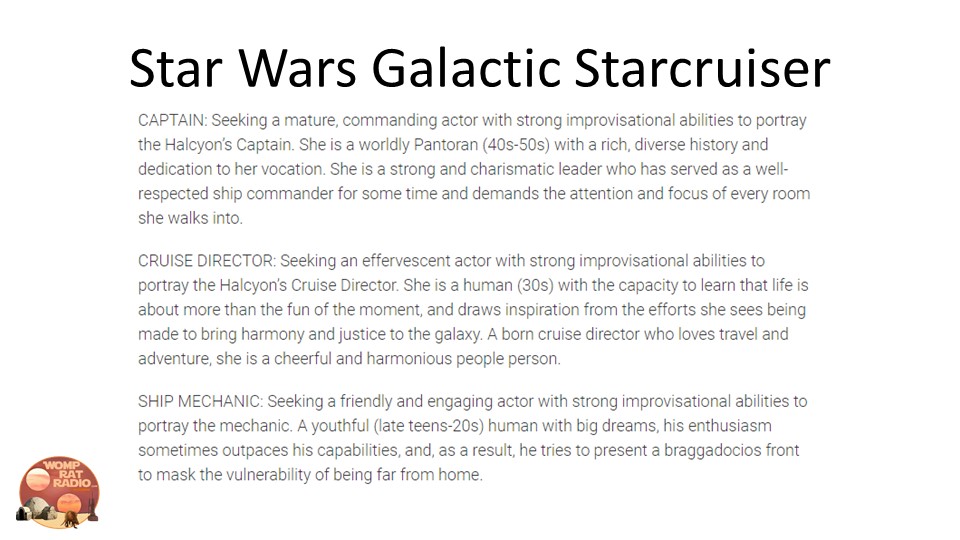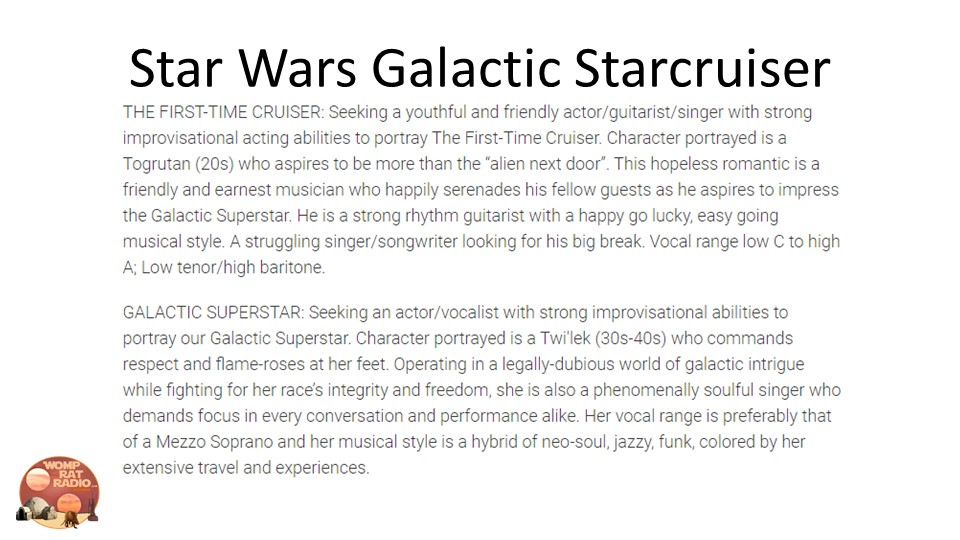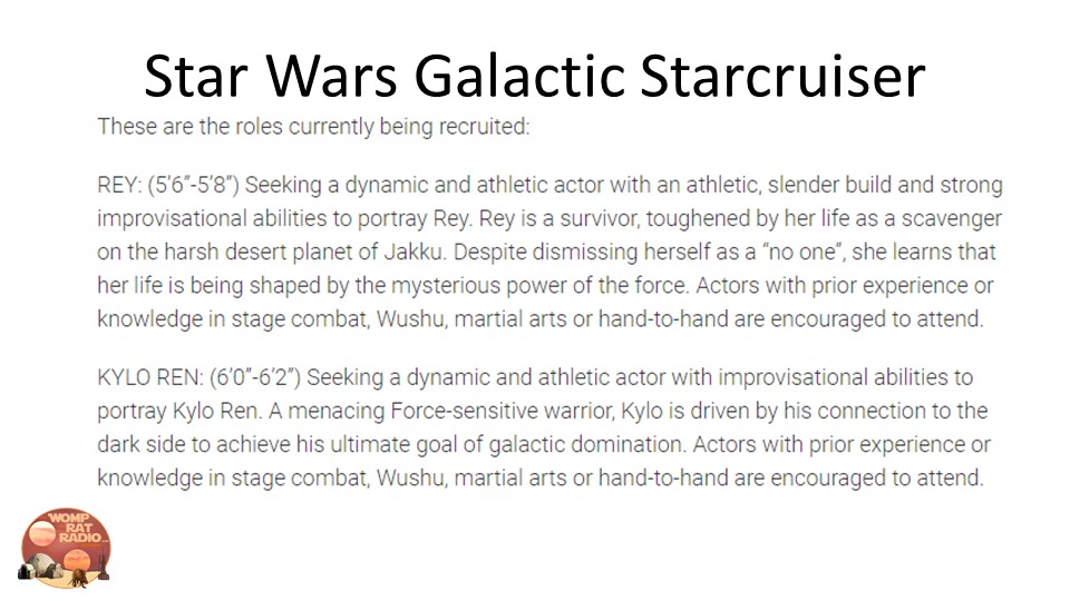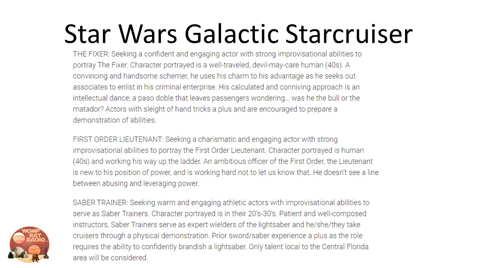 Star Wars Star Cruiser Characters and Castmember openings…